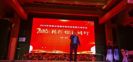 音樂(lè)漸漸停止,屏幕悄然變化,伴隨著激昂的音樂(lè),主持人盛裝登場(chǎng),在表達(dá)了對(duì)在場(chǎng)嘉賓的歡迎以及對(duì)身處生產(chǎn)一線無(wú)法到來(lái)人員的感謝后,西昌藍(lán)鼎執(zhí)行總經(jīng)理李富勇走上舞臺(tái),為本次年會(huì)做開(kāi)幕詞,總結(jié)了過(guò)去一年的種種,表達(dá)了對(duì)公司全體成員一年努力的肯定,闡述了未來(lái)一年濕法脫硫脫硝項(xiàng)目建成落地所要面對(duì)的各種挑戰(zhàn)。隨后是西昌藍(lán)鼎生產(chǎn)部部長(zhǎng)孫小剛上臺(tái),為大家宣布2019年度藍(lán)鼎“十大事件”。隨后本次年會(huì)文藝表演正式開(kāi)始。
